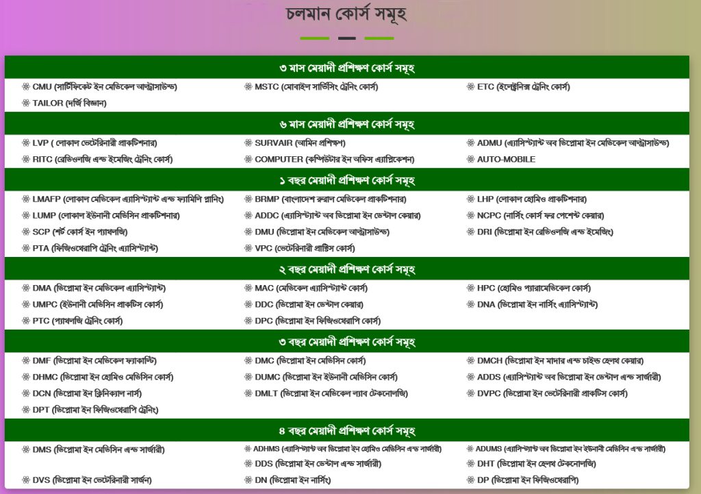 - এ্যালোপ্যাথিক ১.২.৩.৪ বছর মেয়াদী কোর্স সমুহঃ